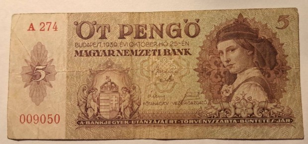5 Pengő - 1939. Személyes átadás vagy postával