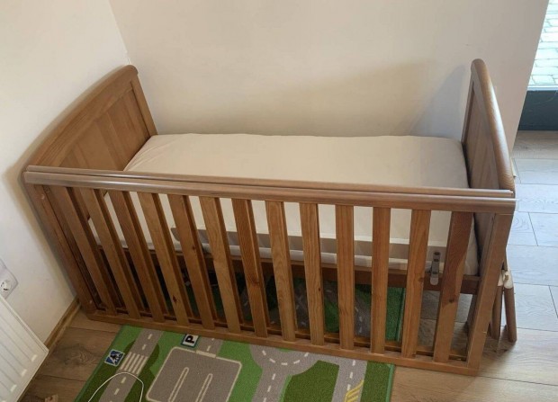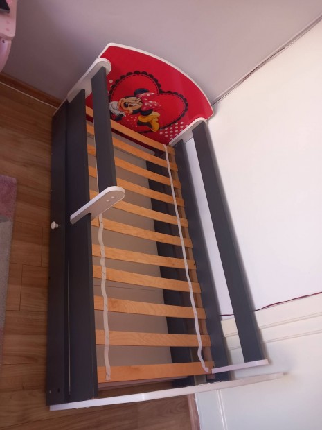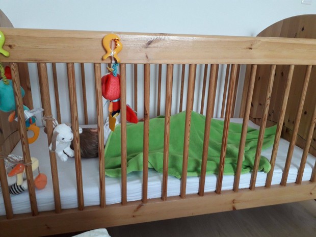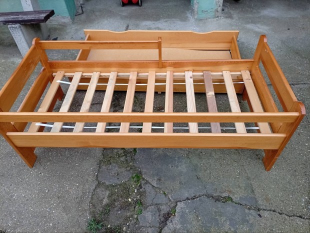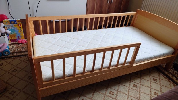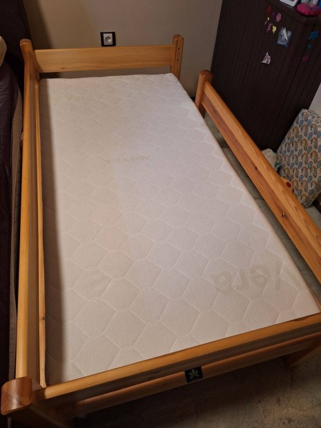 Eladó fenyőfa gyerekágy magasítóval, matraccal