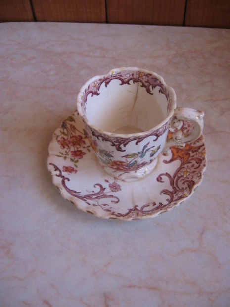 Fajansz csésze aljjal, francia Sarreguemines Fleury