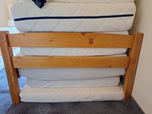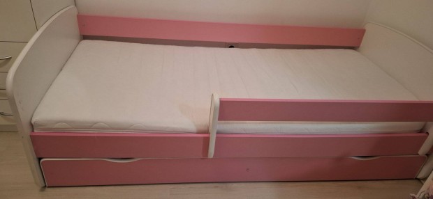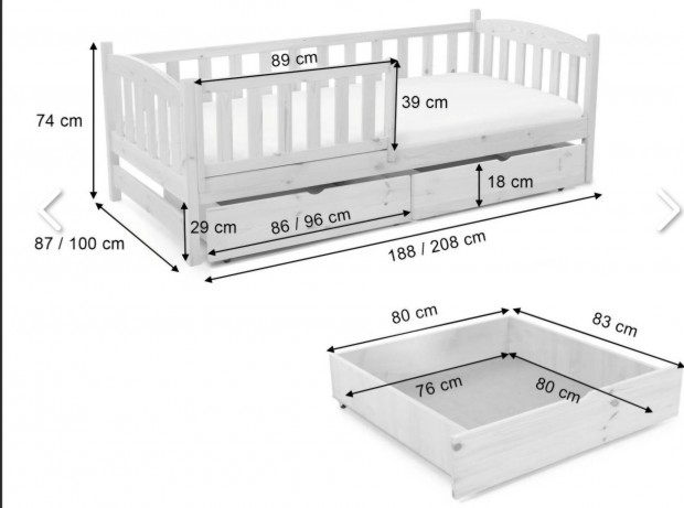 Gyermekágy, ifjúsági ágy leesésgátlóval. 90x200 méretű, fenyő