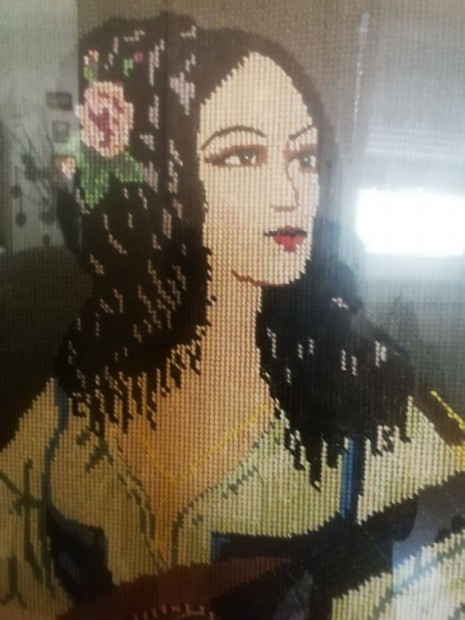 Antik díszes tűgobelin portré gazdagon faragott blondel keretben