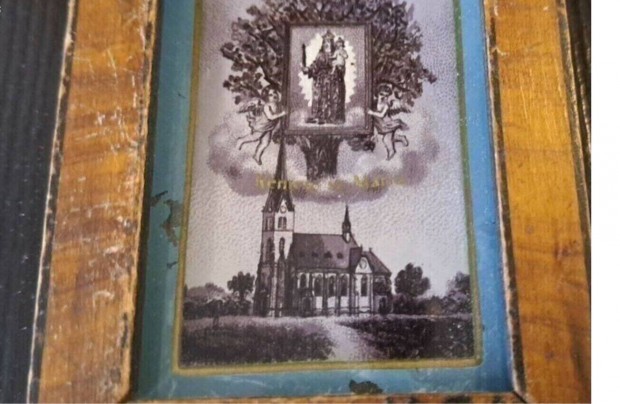 Antik, aranyozott, korhú fa keretben litográfia eladó