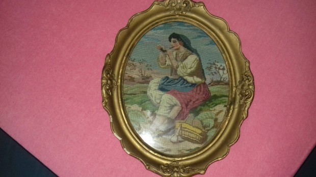 Gobelin több mint 100 éves antik blondel ovál keretben