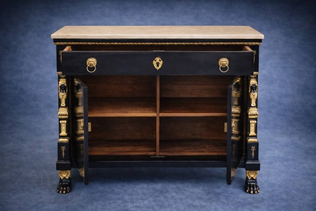Antik ónémet faragott márványlapos tálaló szekrény, komód!