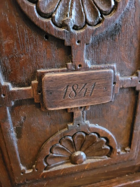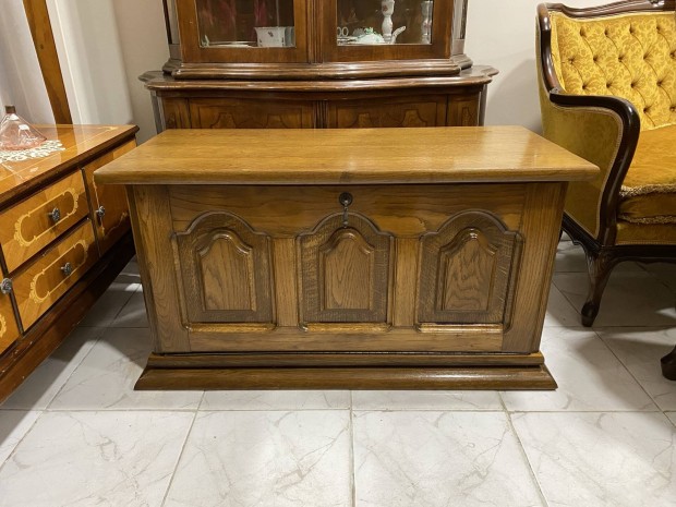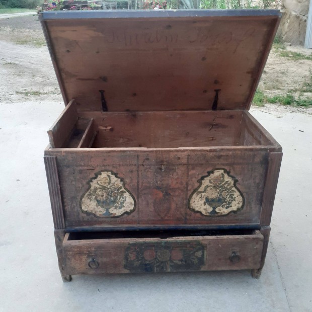 Antik faragott fa láda (tramp art) kulccsal zárható vintage