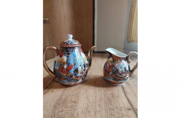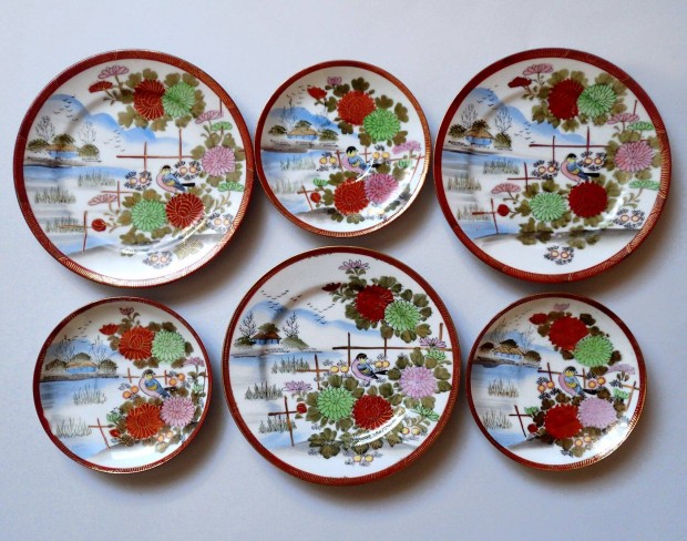 Antik Kutani japán jelzett tojáshéj porcelán készlet tál tányér