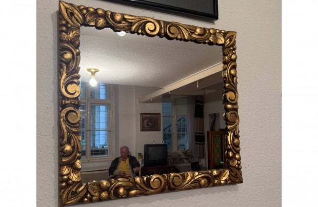 Rámás tükör, antik, barokk gipsz-ráma rokokó