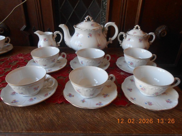 Zsolnay antik manófüles 6 személyes teáskészlet
