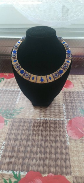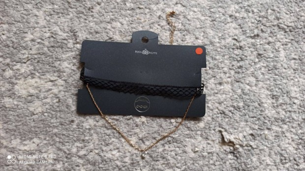 Arany színű fém, fekete csipke bizsu nyaklánc (choker nyaklánc)