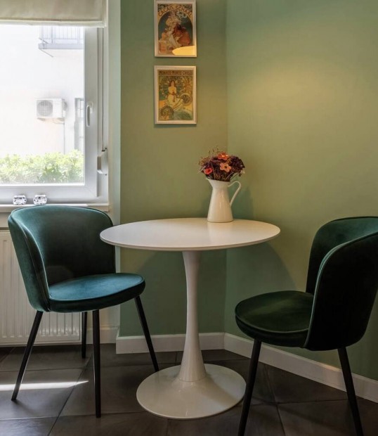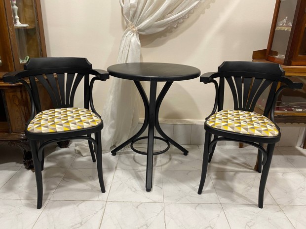 2 db intarziás kerek asztal és 2 db thonett szék. Egyben vagy külön