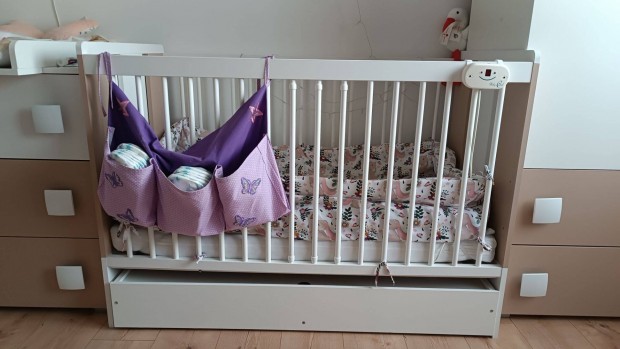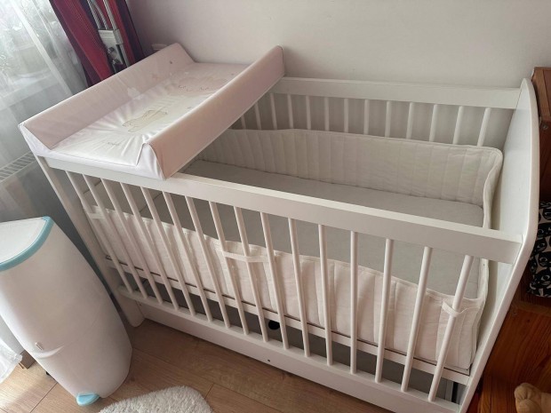 Baba ágy, rácsos ágy+ matrac+ rács védő ajándékba