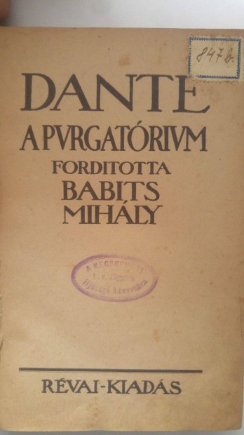 Eladó könyv - Dante: A Pokol (Babits ford.)
