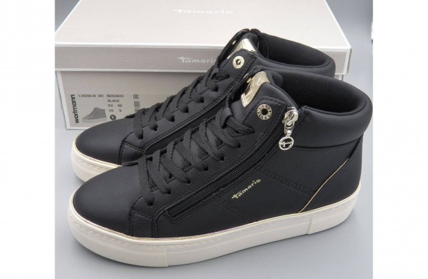 Új dobozával! Tamaris bélelt lakk bakancs, 40 -es