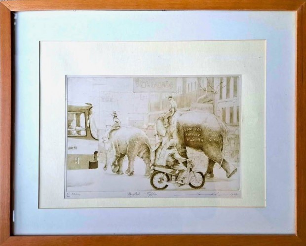 Rézkarc Bangkok traffic (43×53 cm, keretezve)