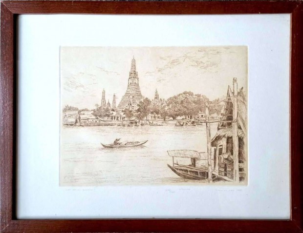 Rézkarc Wat Arun, Bangkok (32,5×42,5 cm, keretezve)