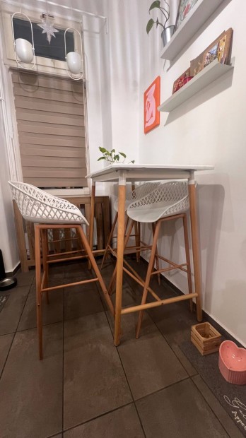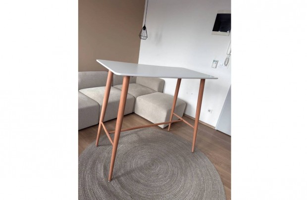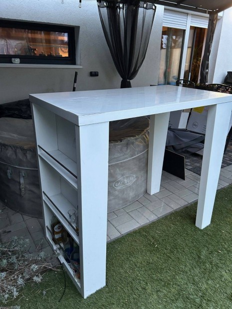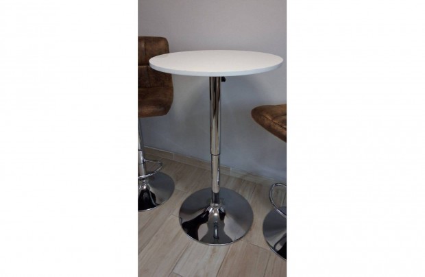 Bárasztal állítható magassággal (fényes fehér+króm)