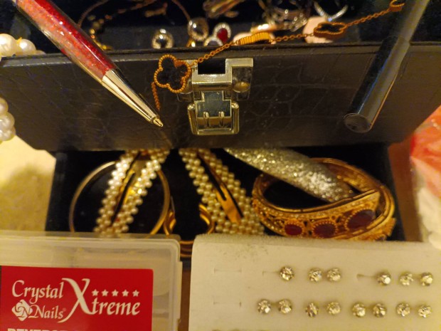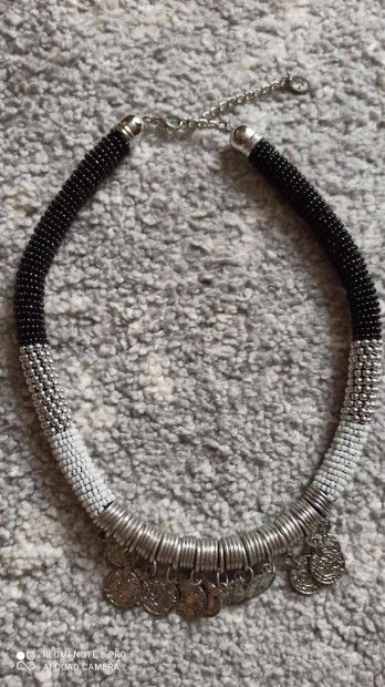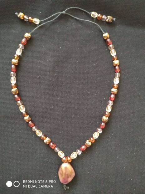 Arany színű fém, fekete csipke bizsu nyaklánc (choker nyaklánc)