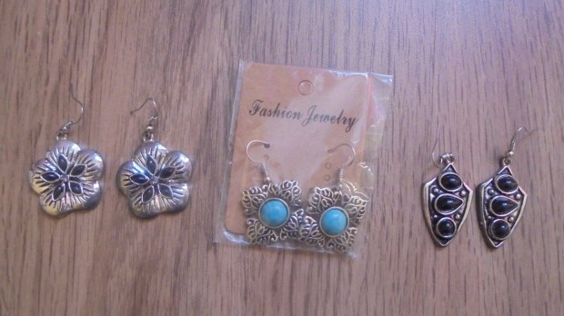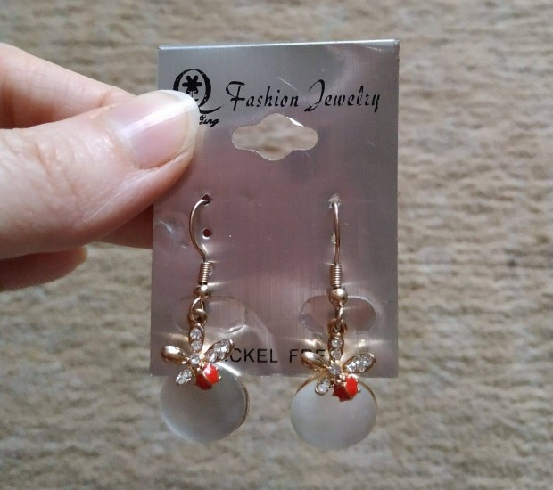 Fehér köves virágmintás lógós bizsu fülbevaló