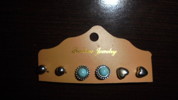 Ezüst színű bizsu csillagos, kék köves nyaklánc, lógós fülbevaló