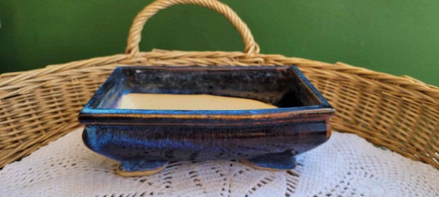 Kék mázas kerámia bonsai tál 9,5 x 14,5 cm