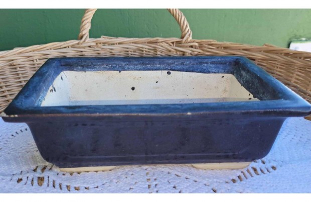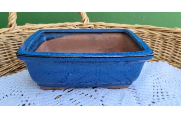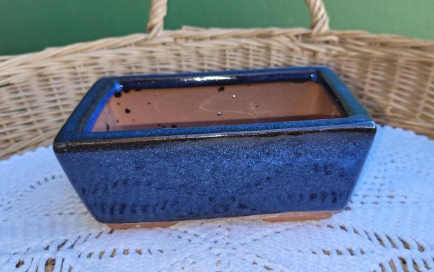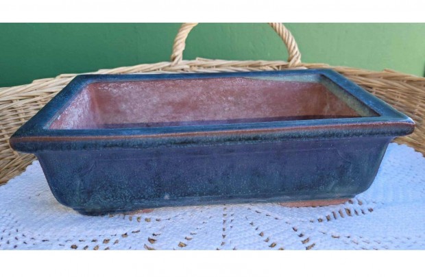 Kék mázas kerámia bonsai tál 13,5 x 19,5 cm