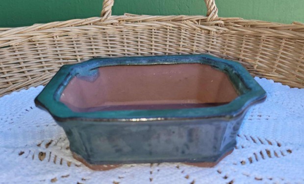 Zöld kerámia bonsai tál 12 x 14,5 cm