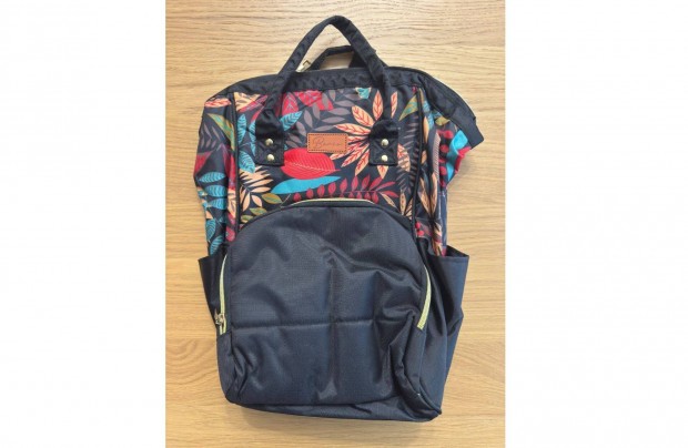 Új Berio Bora Baby Flower Pelenkázó Táska Hátizsák Fekete Virág Mintás