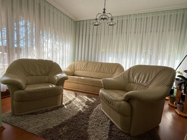 Bőr ülőgarnitúra, kanapé és 2db fotel eladó