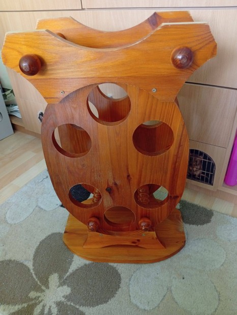 Fa Boros üveg tartó állvány 6 db bőr 65 cm magas