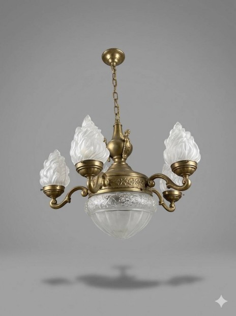 Szecessziós opál láng búrás csillár lámpa