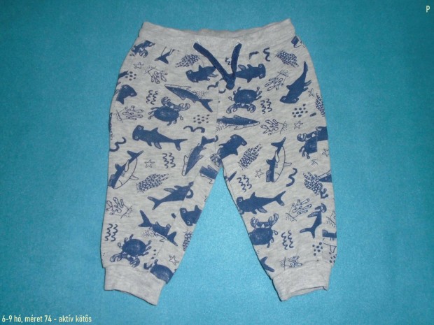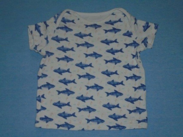 F&F cápa mintás fehér póló 9-12 hó (méret 80)
