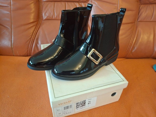 Csatos, fekete női bokacsizma csökkentett áron eladó - 40