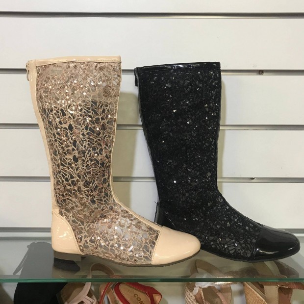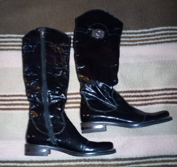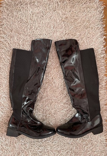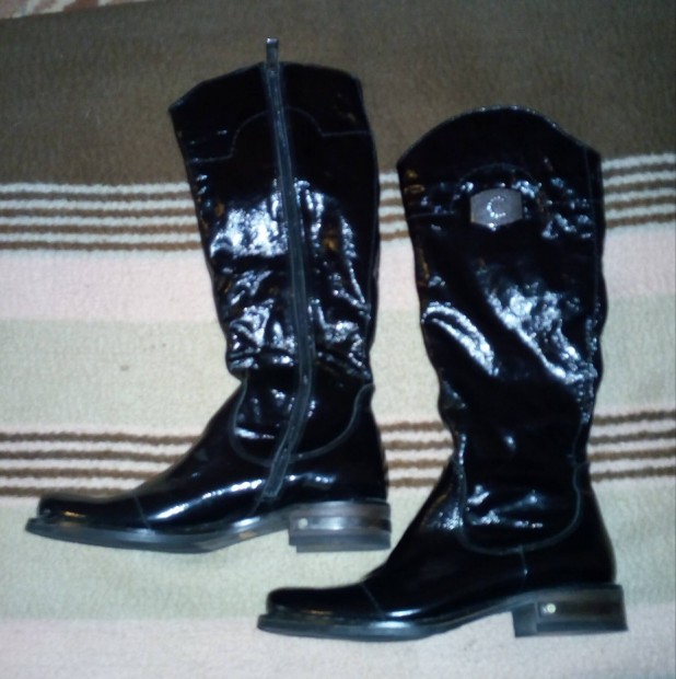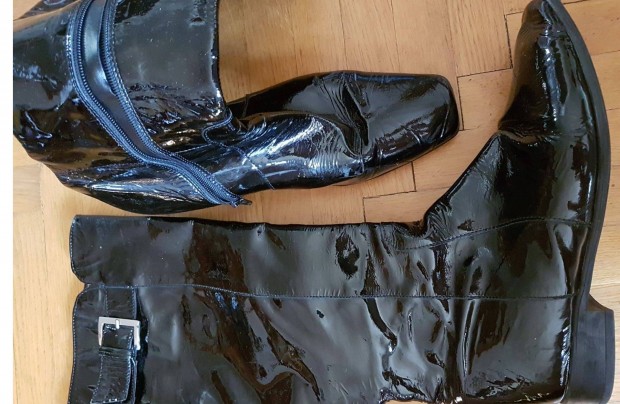 lakk fekete bakancs csizma gyöngyös díszítés* 40