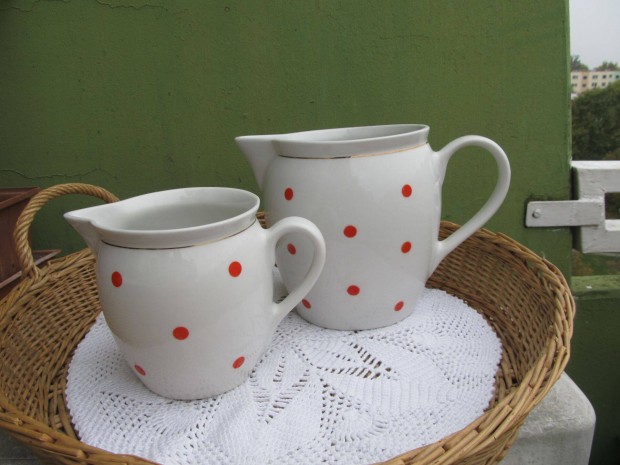 Vintage Wilhelmsburger Porzellan piros pettyes csupor pár