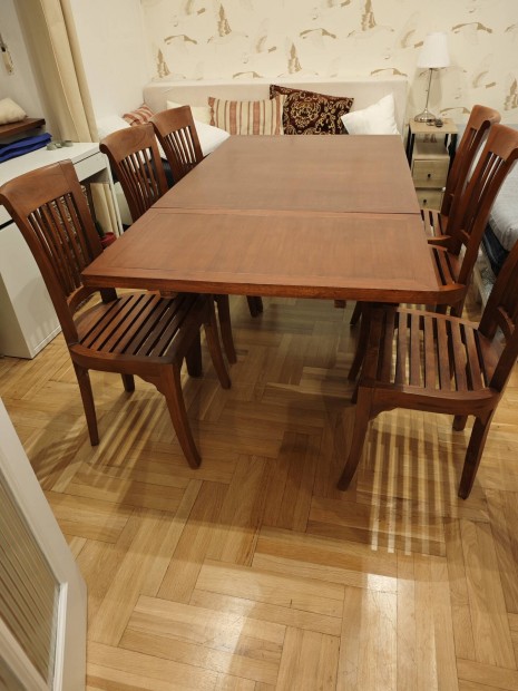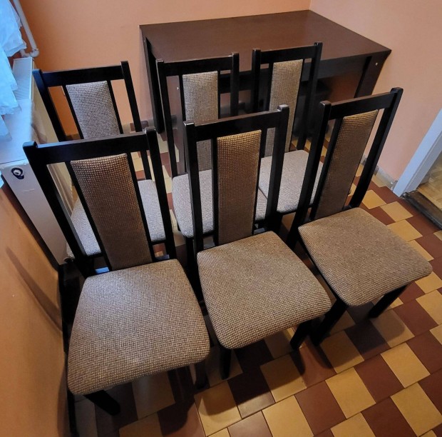 Ebédlőasztal (10 fősre kihúzható, 6 székkel, 60.000,-Ft,