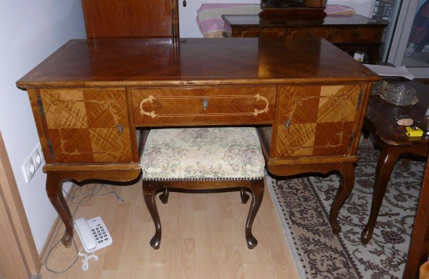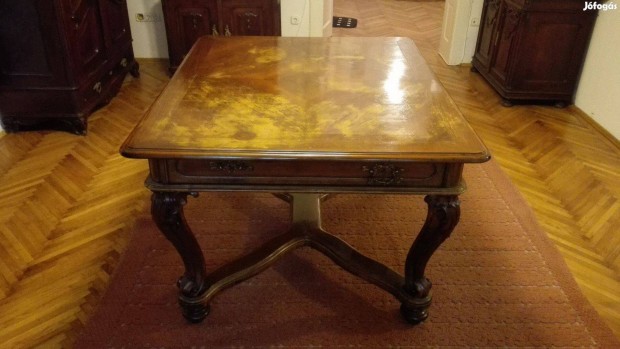 Eladó a képen látható "póklábú" Biedermayer stílusú intarziás asztal