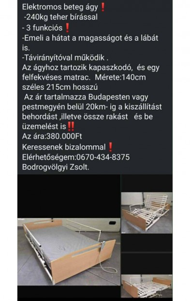 Betegágy, elektromos ágy eladó Debrecen Ben.