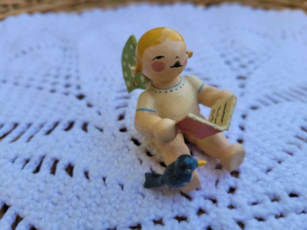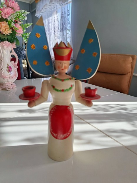 Ritka, nagyméretű Erzgebirge fa angyal gyertyatartó (48 cm)