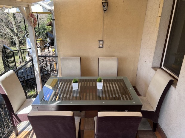 Faragott étkező asztal étkező garnitúra 6 darab székkel