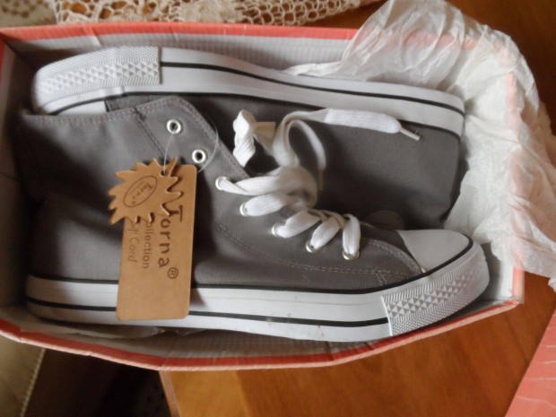 Új magasszárú, szürke fűzős férfi vászon cipő