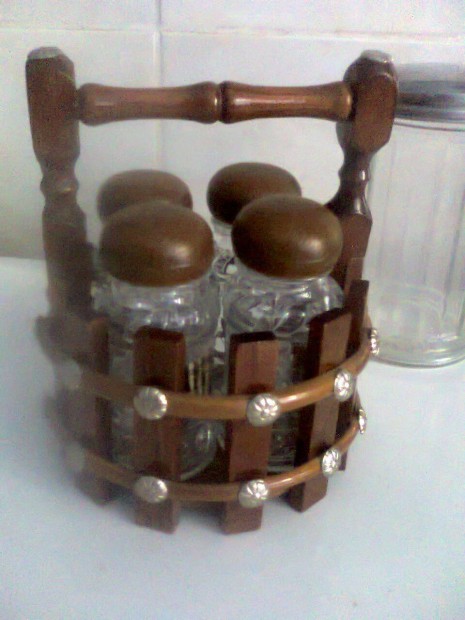 Retro üveg fűszertartó, só-bors-fogpiszkáló tartó