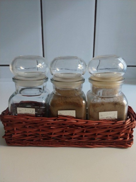 Üveg fűszertartó, tároló 13 x 7 cm