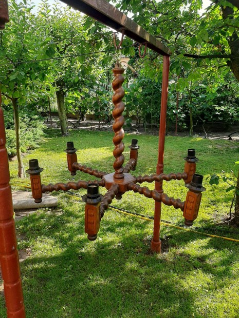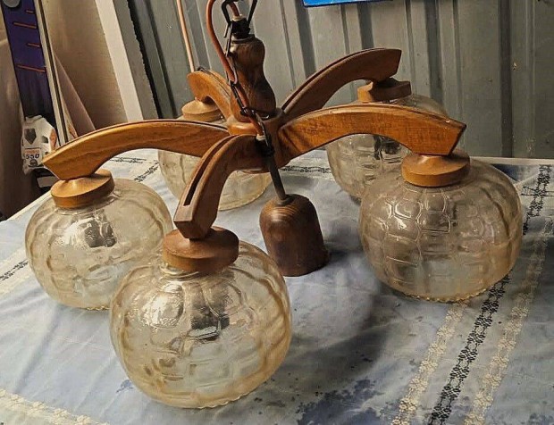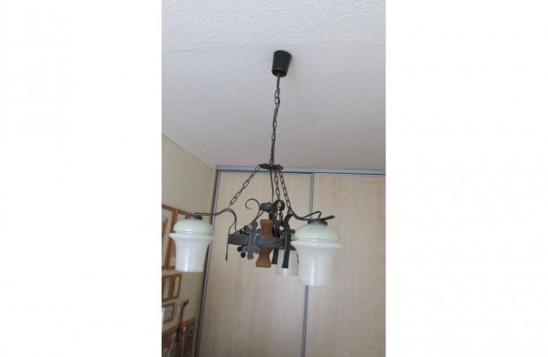 Fa, kovácsoltvas, üveg mennyezeti lámpa