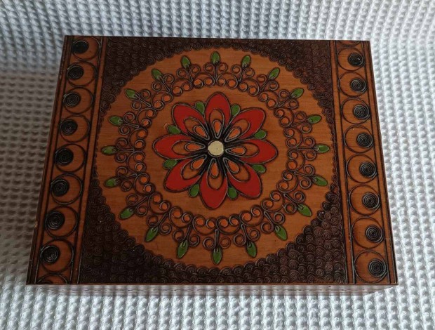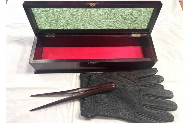 Antik, art nouveau mahagóni üveg kesztyű tároló fa ládika + tágító