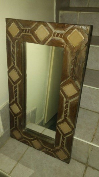 Csempés díszítésű fakeretes kézműves tükör 40x70cm
