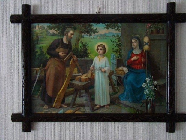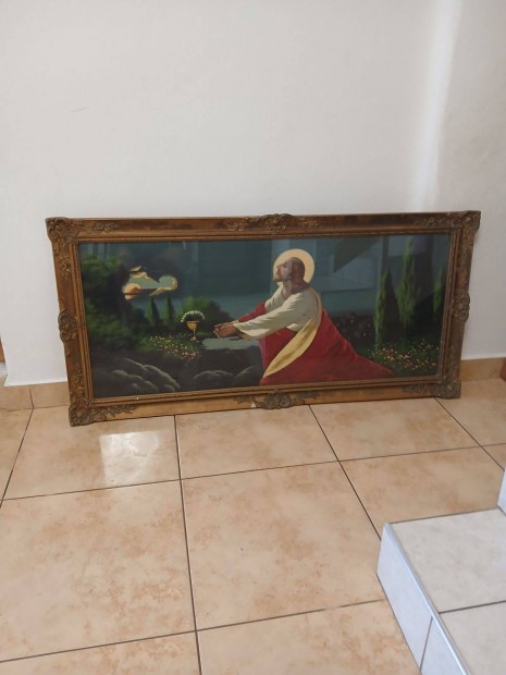 Faragott 100 éves fakeretben szentkép olajnyomat