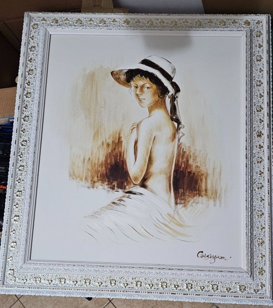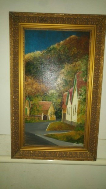 Régi olajfestmény díszes fakeretben