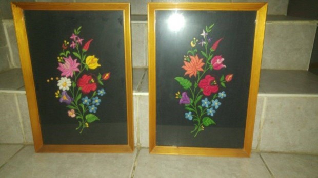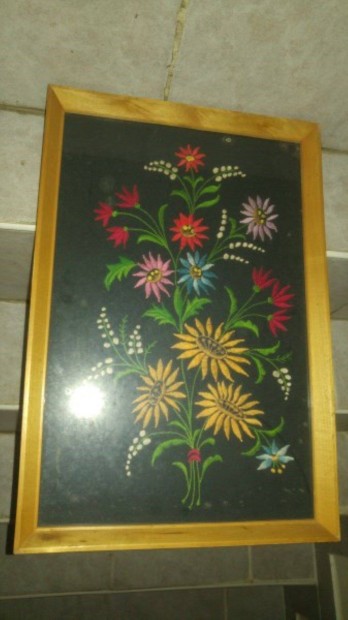 Hímzett virágképek 28x40cm fa fakerettel