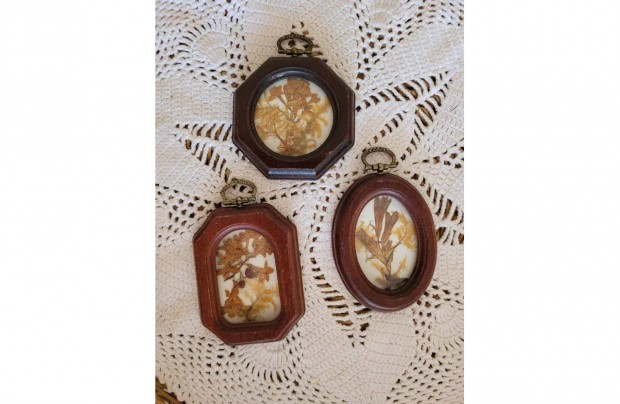Régi kis fakeretes képtartó réz akasztóval 3 db