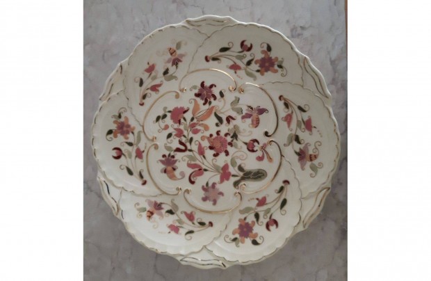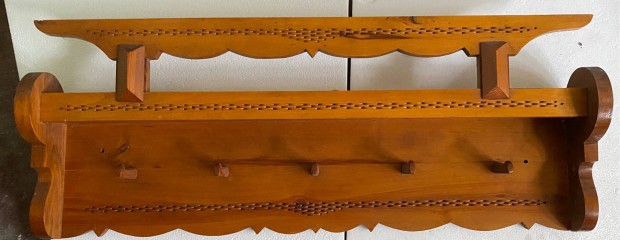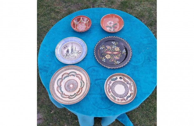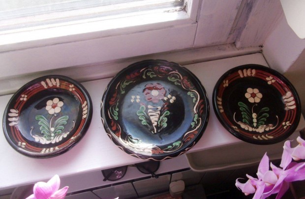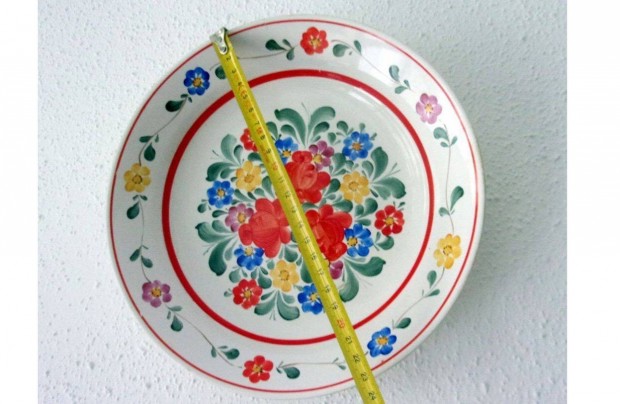 Retro fa fali tányér, vésett / égetett festett népi minta, 29 cm